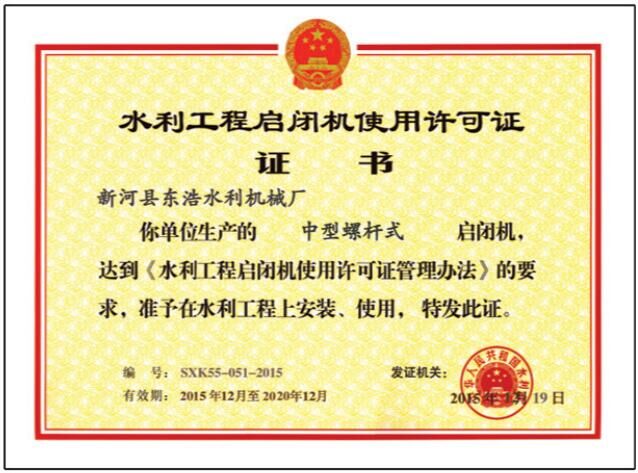 產(chǎn)品符合SL41-93《水利水電工程啟閉機(jī)設(shè)計(jì)規(guī)范》、SD297-88《QL型螺桿式啟閉機(jī)系列參數(shù)》、 SD298-88《QL型螺桿式啟閉機(jī)技術(shù)條件》、SD315-89、SD296-83等系列國(guó)家標(biāo)準(zhǔn), 多次受到省、市政府部門(mén)的嘉獎(jiǎng),并由水利部、農(nóng)業(yè)部授予推薦品牌。 憑過(guò)硬的產(chǎn)品質(zhì)量和合理的產(chǎn)品價(jià)格,在全國(guó)的水利水電工程建設(shè)項(xiàng)目中多次中標(biāo), 為水利水電建設(shè)做出了卓越的貢獻(xiàn)。